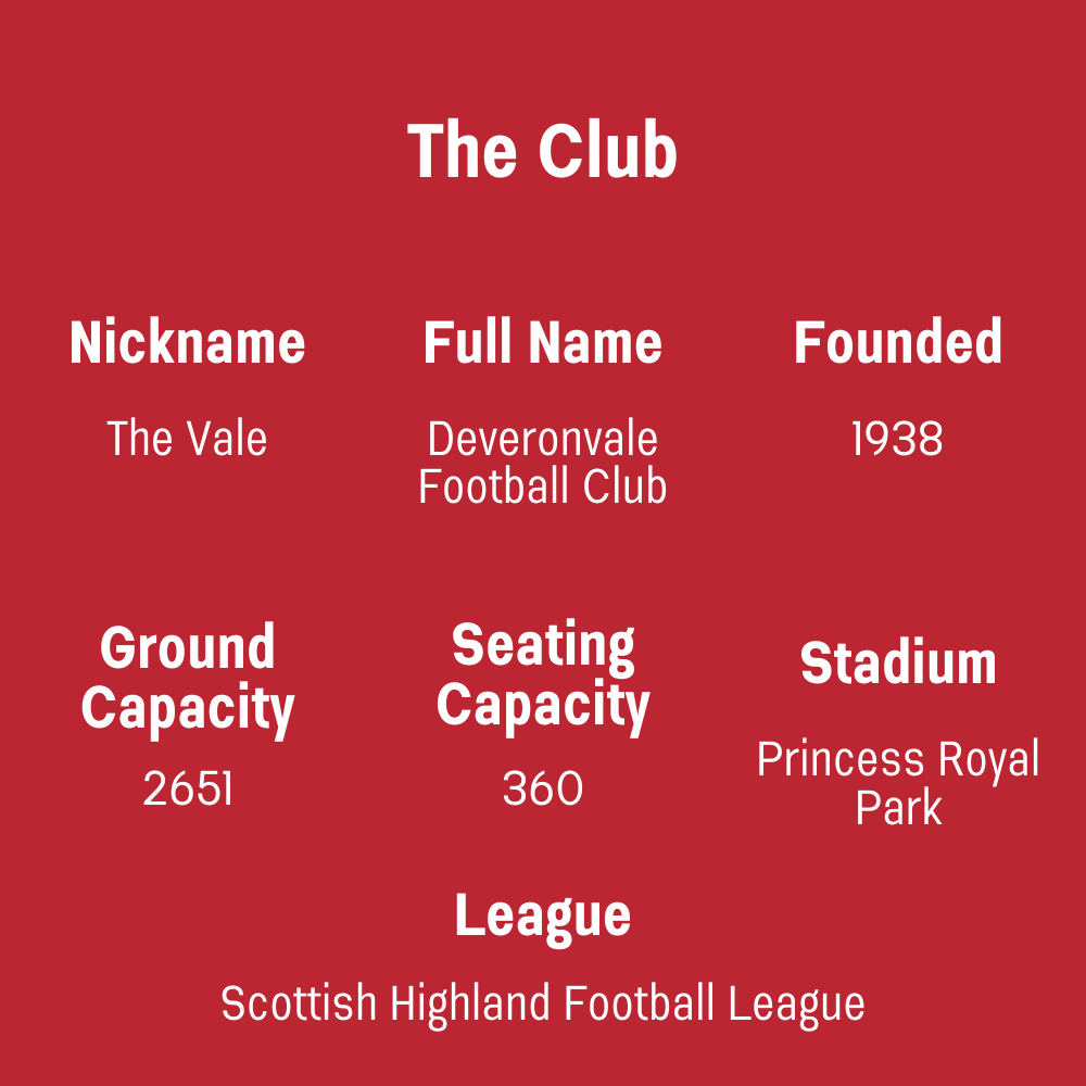 Deveronvale are a semi-professional football club currently playing in the Breedon Scottish Highland Football League. We were founded in 1938 and play our football at the picturesque and aptly named Princess Royal Park in Banff.